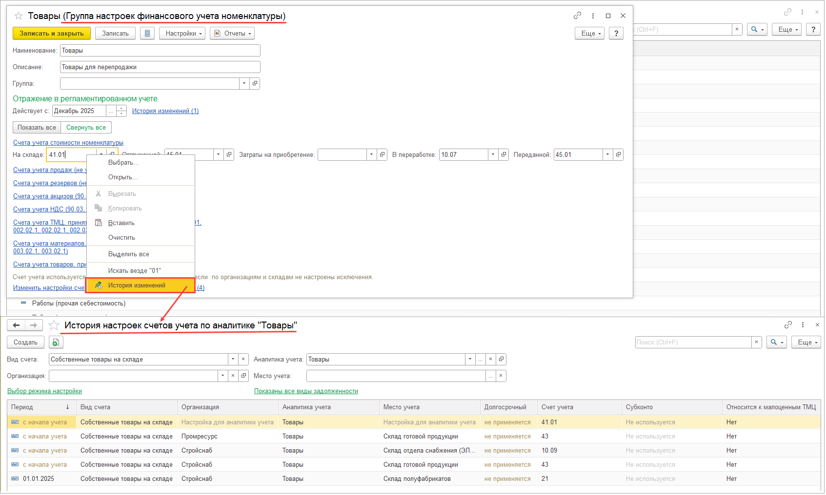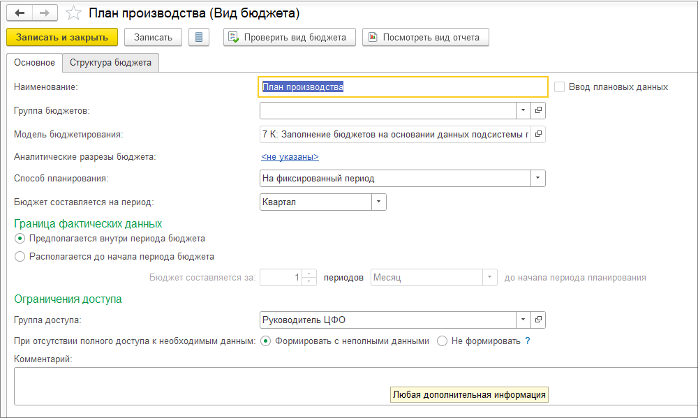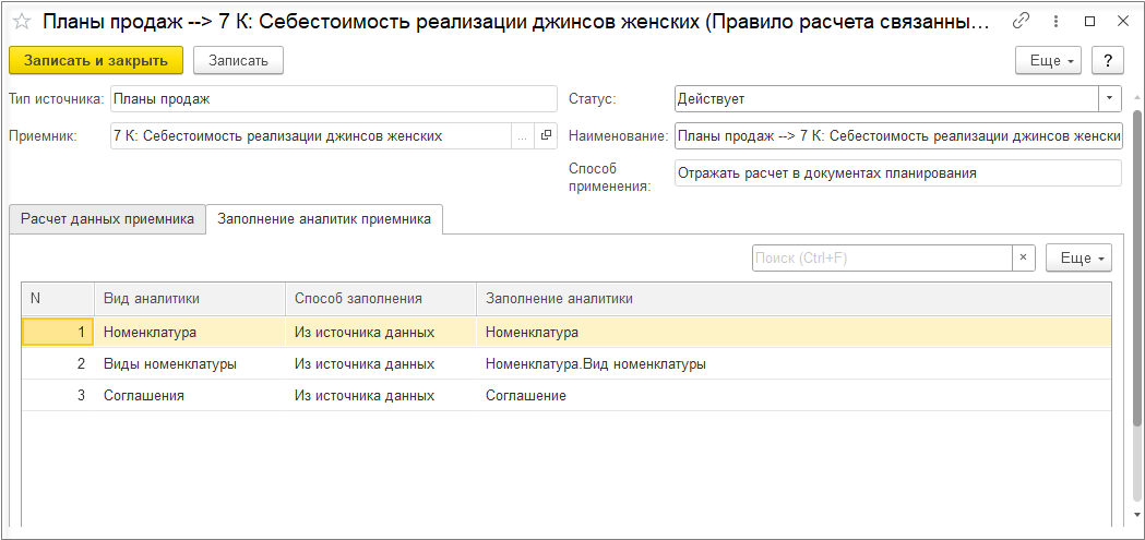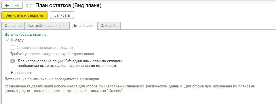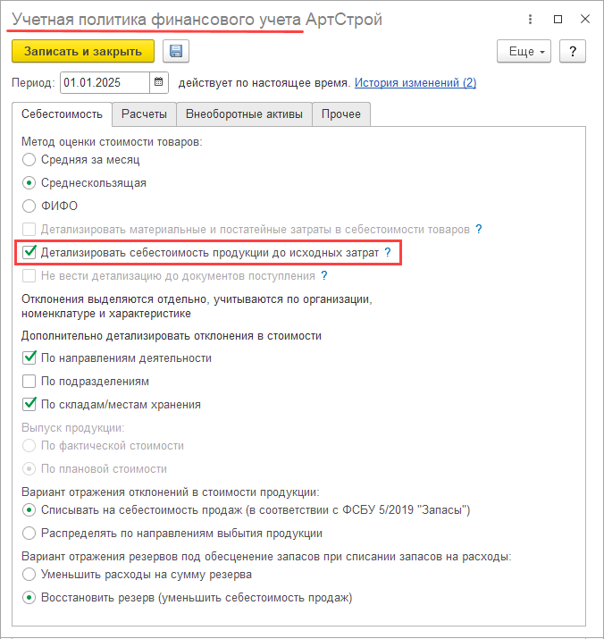 Настройка Детализировать себестоимость продукции до исходных затрат доступна при использовании всех методов оценки запасов. При использовании метода оценки запасов ФИФО настройка включается автоматически и недоступна для отключения.