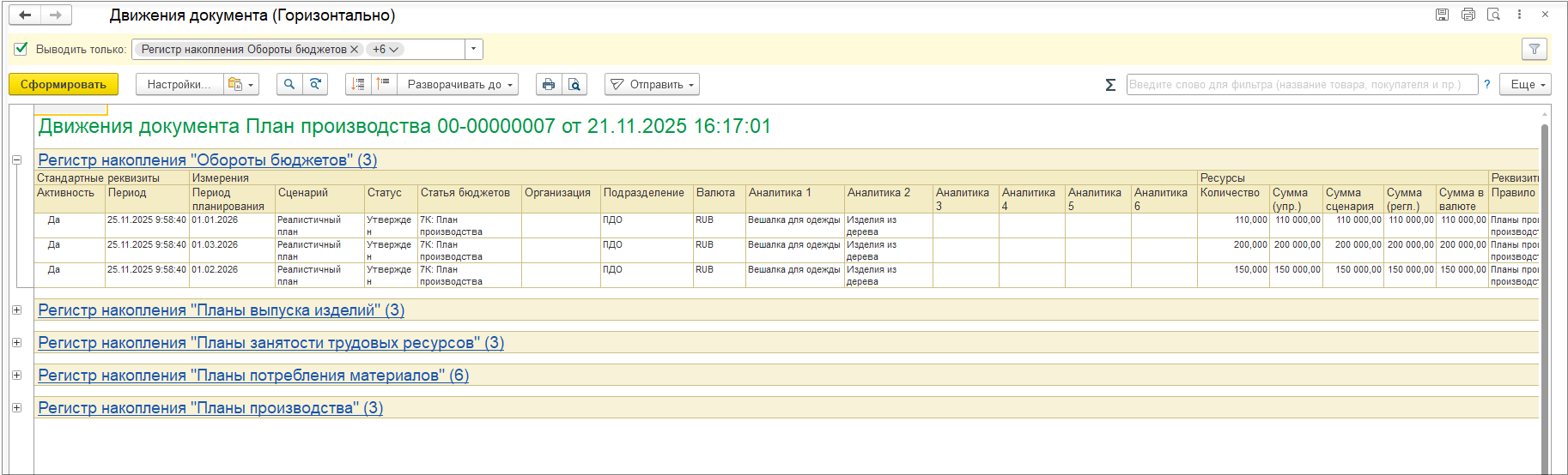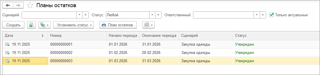 На заключительном шаге формируются документы заявки на поставку и отображается результирующая таблица с документами, содержащими план поставок на склады торговых площадок.