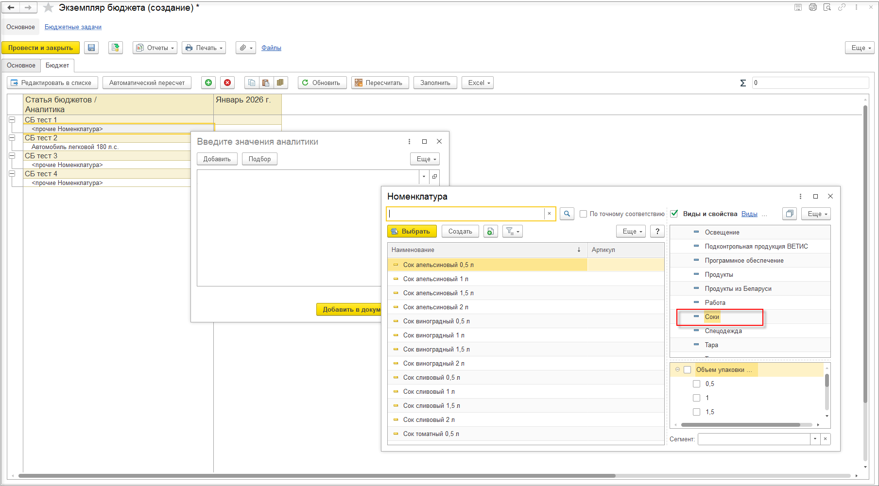 Если номенклатура введена в произвольной форме (не из