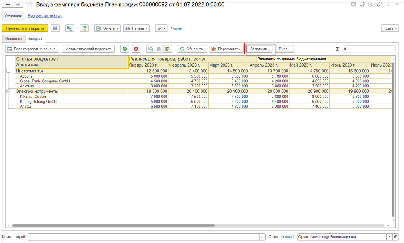После того как будут созданы коммерческие предложения, можно в заявке заполнить цены по подобранным в запросе коммерческим предложениям и вернуть на согласование ответственному лицу.
