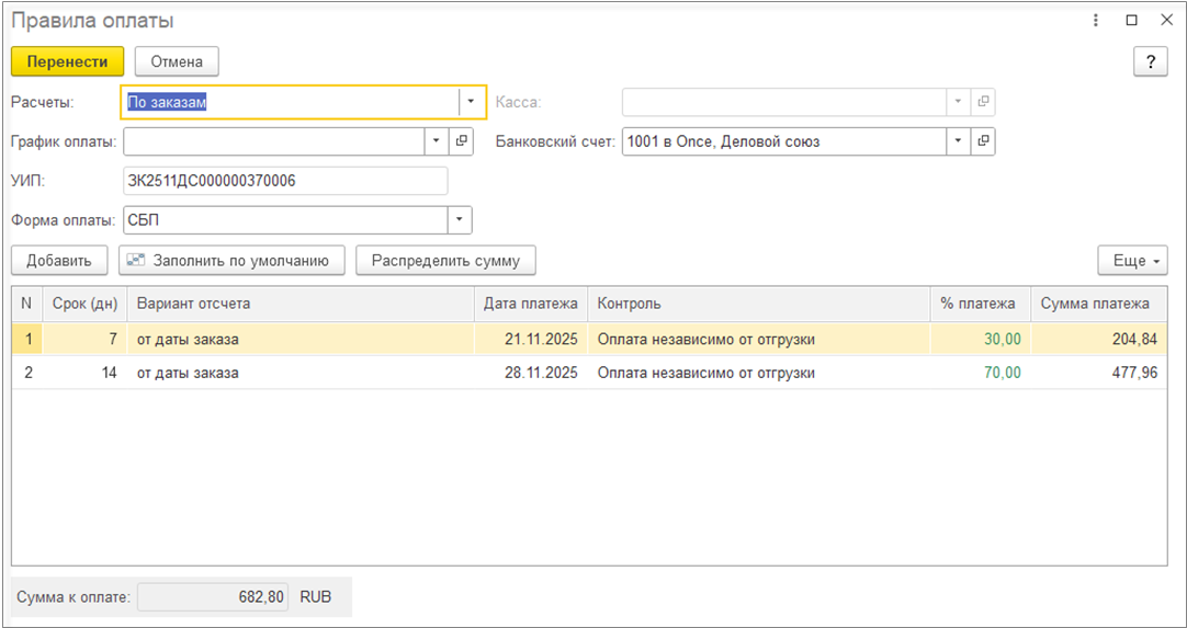 При разбивке сначала берутся цены, выбранные в первом (по дате) запросе коммерческих предложений. Внутри запроса коммерческих предложений выбранные позиции не упорядочены, результат случайный, но всегда одинаковый, если документы не изменялись (сортировка по номеру строки скрытой таблицы «ВыбранныеИсточники»). Такой подход позволяет после разбивки заполнять цены с тем же результатом и независимо от количества выделенных строк.