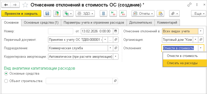 В документ Приобретение услуг и прочих активов добавлены новые реквизиты:
