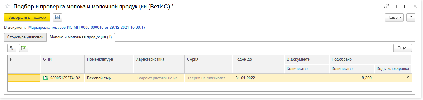 В случае если вес или объем потребительской упаковки не фиксирован, учет продукции ведется в мерных единицах, в частности, в килограммах или литрах. Примером такой продукции будет сыр, отгружаемый в головах. Такую продукцию будем называть весовой молочной продукцией. При оформлении операций нанесения кодов маркировки и ввода такой продукции в оборот требуется указание кодов маркировки по количеству единиц продукции.