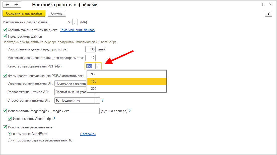 В новой версии программы для предпросмотра PDF-файлов с большим разрешением появилась настройка Качество преобразования PDF (dpi). По умолчанию установлено среднее значение – 150 dpi.
