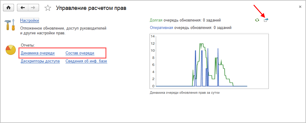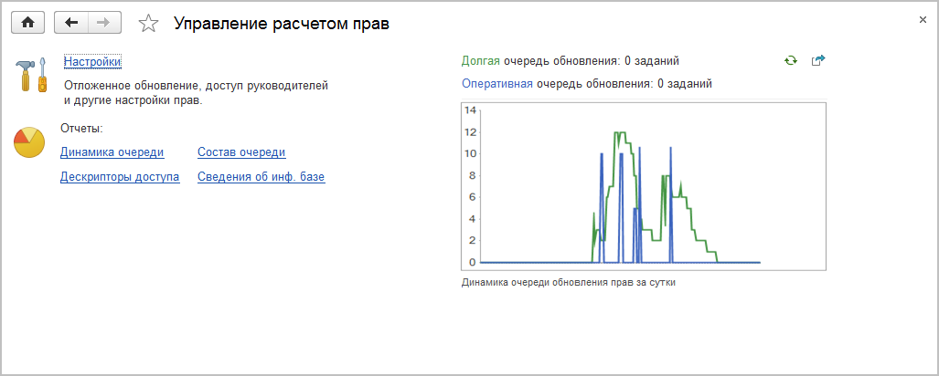 ■ с помощью представленного графика следить за динамикой очереди обновления прав за сутки;