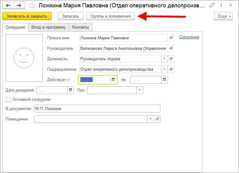 Также полномочия выдаются прямо в карточках сотрудников, рабочих групп и подразделений.