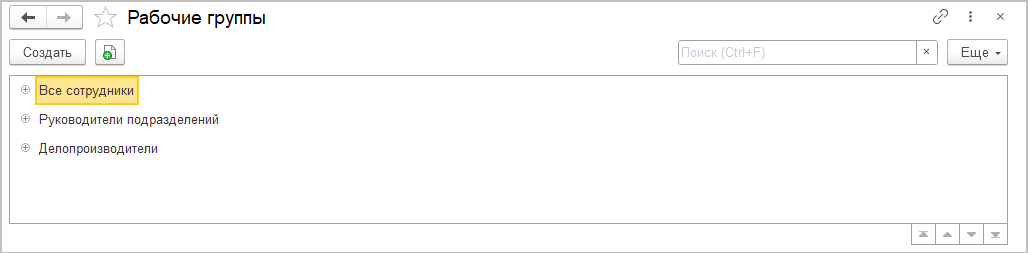 Рабочие группы можно использовать для быстрого объединения сотрудников по общим полномочиям. Например, объединить всех руководителей подразделений и назначить им какие-то исключительные права.
