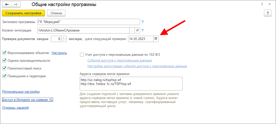■ получать из «1С:Архива» данные об уничтожении документов;