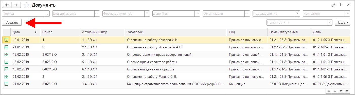 Для этого в списке Документы предусмотрена кнопка Создать.