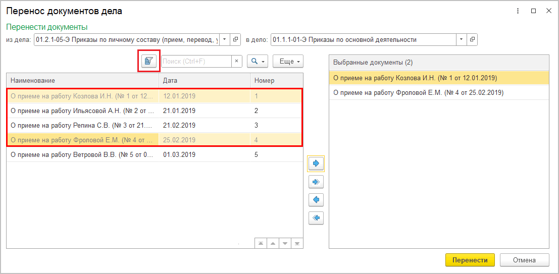 ■ Во время переноса документов дела при двойном клике документ открывался, а не переносился в другой список.