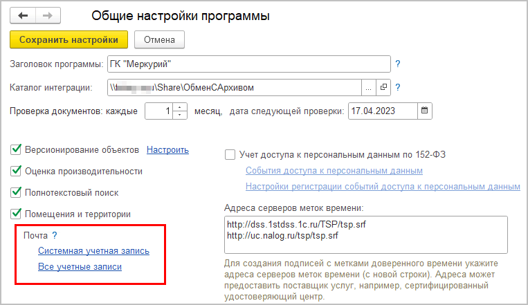 При клиент-серверном режиме работы программы необходимо иметь в виду, что рассылка выполняется на сервере «1С:Предприятия». Путь к одному ресурсу может отличаться для клиента и сервера в зависимости от их сетевого расположения и операционных систем.