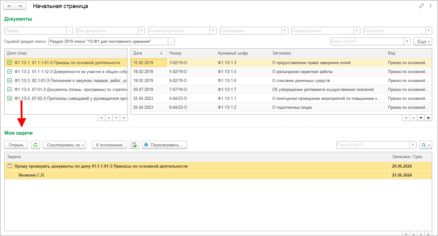 Для работы с задачами на начальной странице и в Главном меню предусмотрена команда Мои задачи.