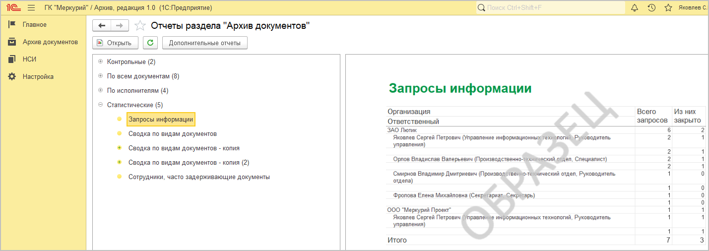 В разделе Документы предусмотрен отчет Запросы информации: