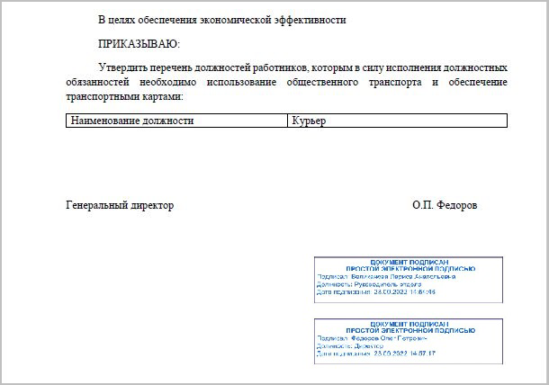 ■ Для простой – ФИО сотрудника, подписавшего документ, Дата подписи.