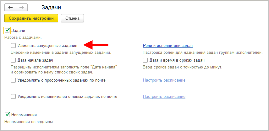 Для этого в настройках Задач предусмотрена настройка Изменять запущенные задания.