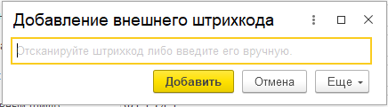 Одному документу может быть добавлено неограниченное количество внешних штрихкодов.