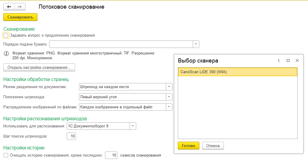 Для обработки большого количества отсканированных документов в 1С:Архиве используется Потоковое сканирование.