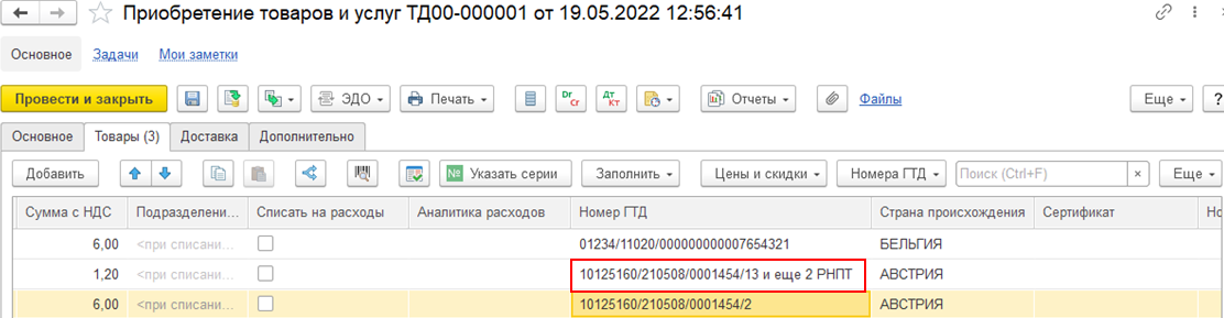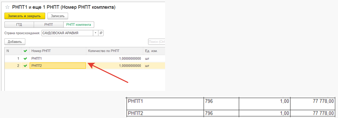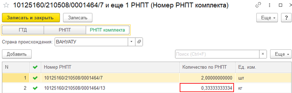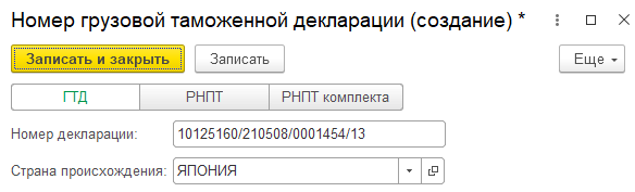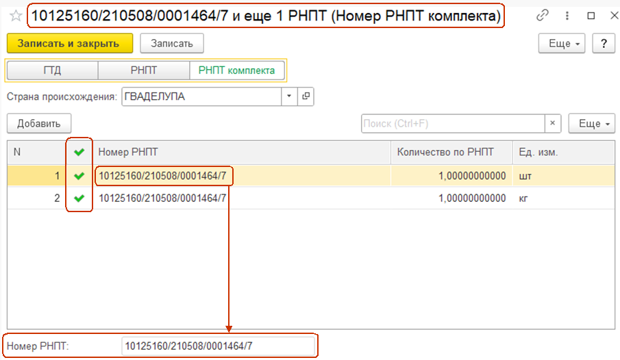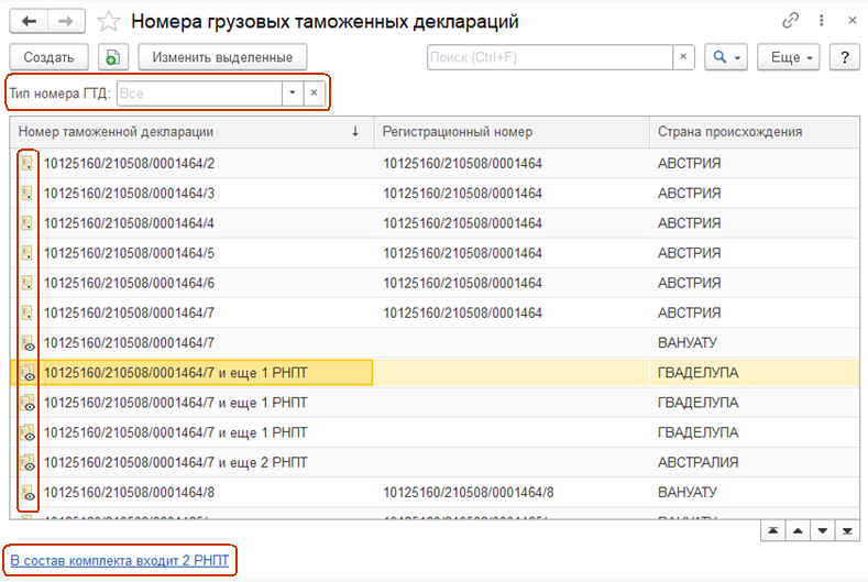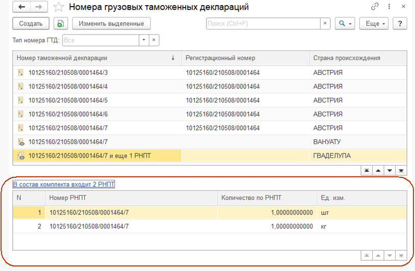 Подробная информация о составе номеров РНПТ комплекта хранится в табличной части справочника номера ГТД.