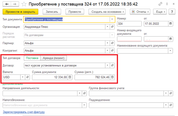 При вводе на основании будут заполнены перечисленные ниже реквизиты. Остальные обязательные реквизиты, не заполненные на основании документа, следует дозаполнить перед отправкой документа.