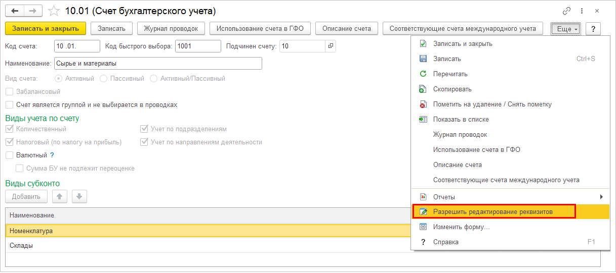 Необходимый состав реквизитов справочника Номенклатура не зависит от установленных функциональных опций. При загрузке элементов справочника установлен минимально необходимый набор обязательных реквизитов. Остальные реквизиты не обязательны для заполнения.