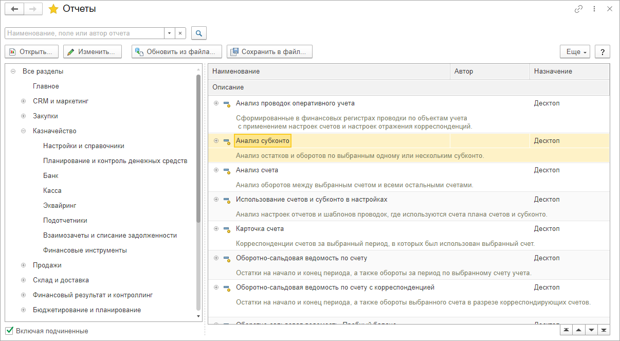 В варианте Десктоп доступны отчеты с назначением Десктоп и Везде.
