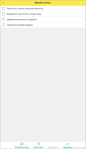 Реализован функционал по просмотру стандартных отчетов и отчета Монитор целевых показателей в мобильном клиенте в автономном режиме.
