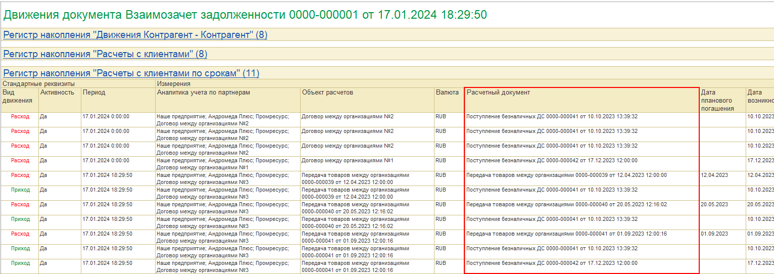 После отражения документов появится возможность установить переключатель на значение По корреспондирующим регистрам остатков.
