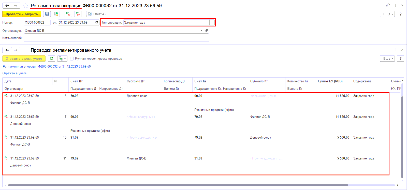 Настройка управляет выполнением этапа Закрытие счетов учета доходов и расходов в рабочем месте Закрытие месяца и проведением документа Регламентная операция (международный учет) с типом операции Закрытие счетов учета доходов и расходов.