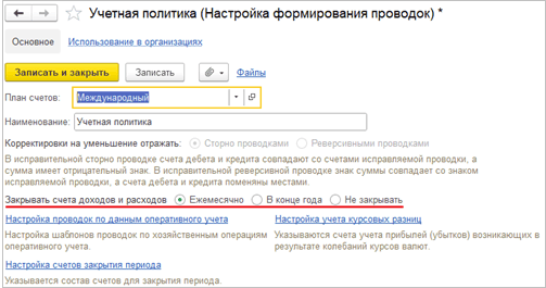 В справочник настроек формирования проводок международного учета добавлена настройка периодичности закрытия счетов учета доходов и расходов со значениями: