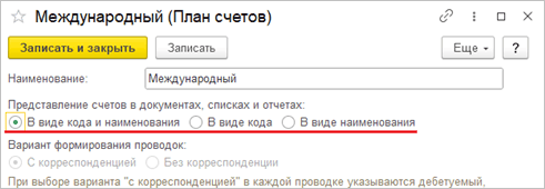 В справочник планов счетов международного учета добавлена настройка представления счетов международного учета, входящих в текущий план счетов: