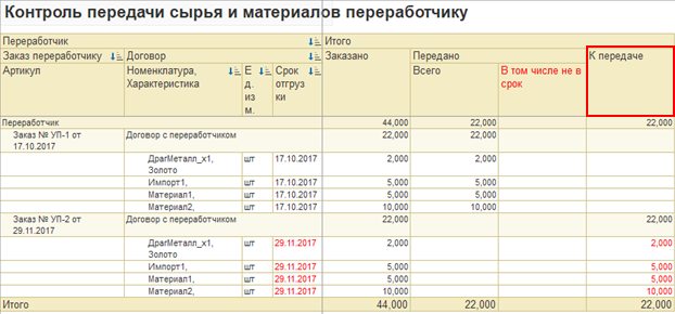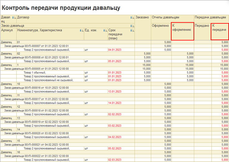 ○ В отчет «Контроль передачи продукции давальцу» добавлена колонка «К оформлению» отчетов давальцу, данные также получаются на текущую дату.