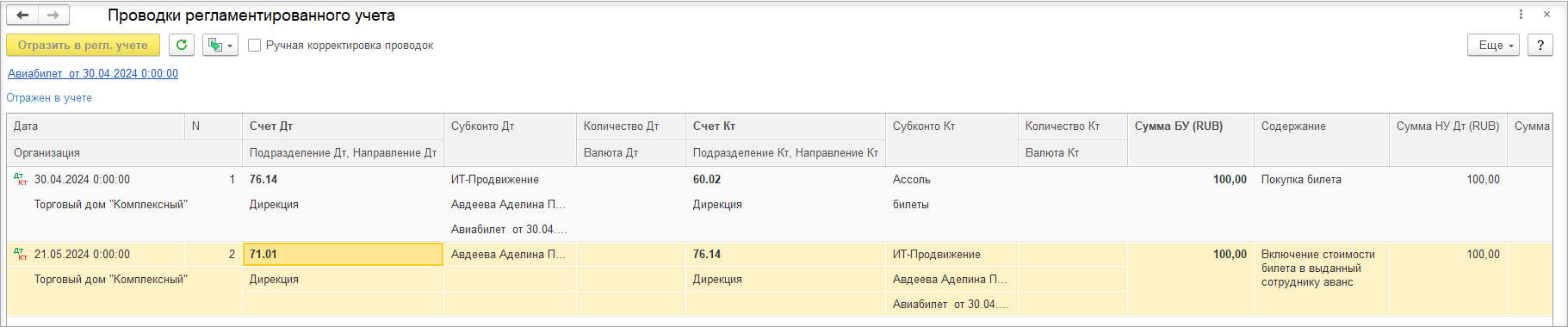 Внесены изменения в порядок отражения в регламентированном учете документа Электронный билет при наличии в нем зачета аванса агенту.