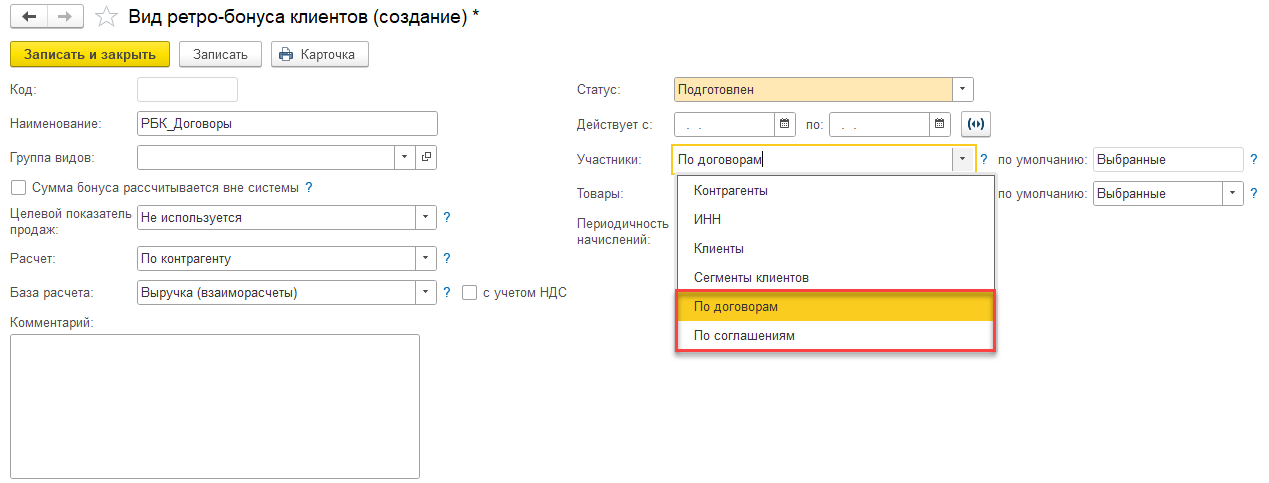 ○ всем контрагентам и клиентам, если в условии ретро-бонусов выбрано хотя бы одно типовое соглашение,