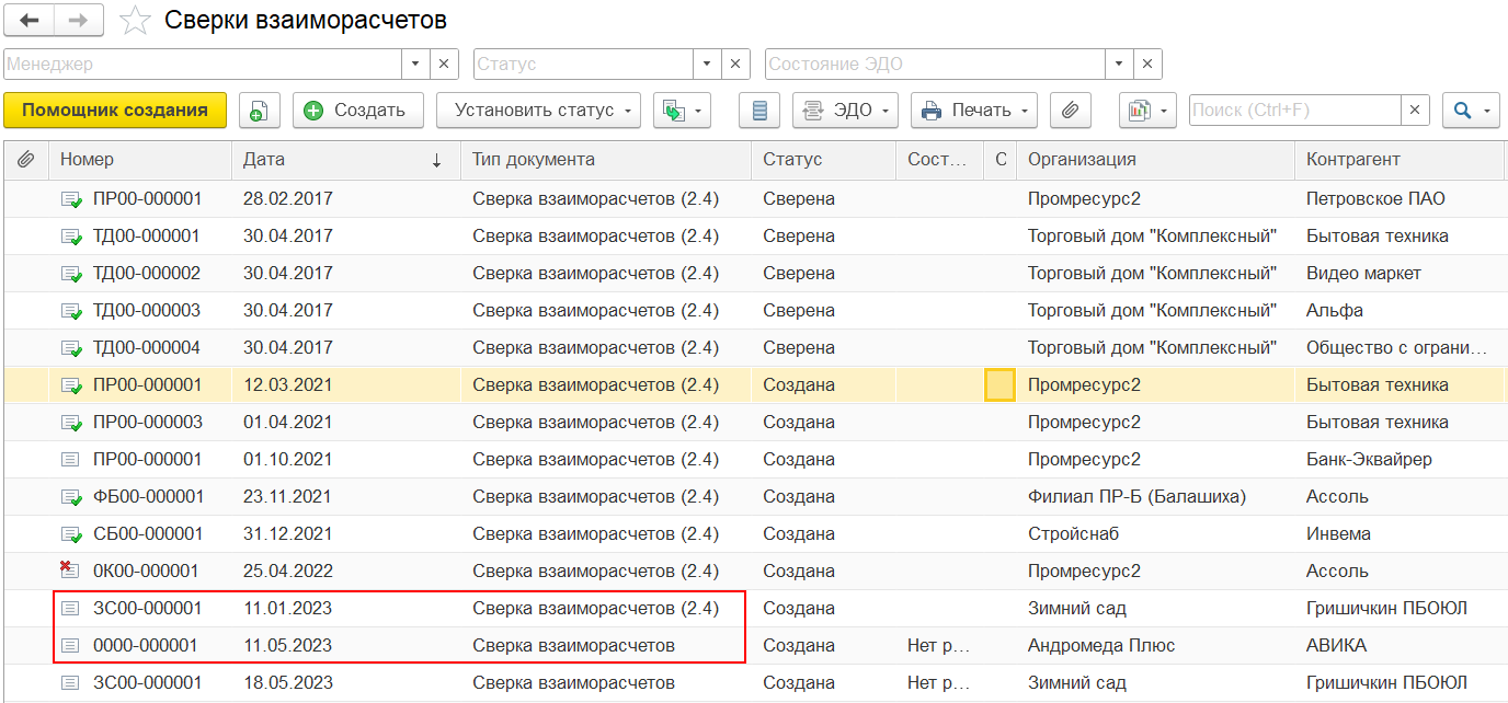 ■ Обеспечен переход на формирование единого документа сверки (документ Сверка взаиморасчетов) – избавление от двойственности документов сверки взаиморасчетов (Сверка взаиморасчетов (2.5.11) и Сверка взаиморасчетов (с фин.инструментами)). Теперь для создания новой сверки предусмотрен один единый документ Сверка взаиморасчетов при режиме взаиморасчетов онлайн.