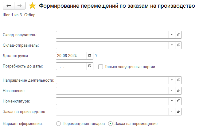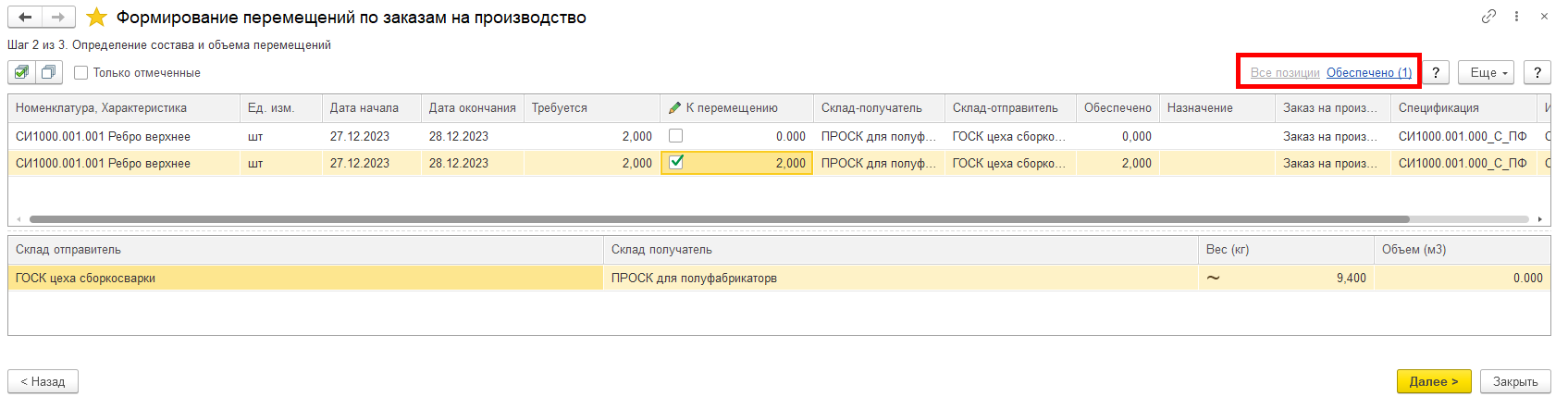 При переносе между отправлениями контролируется, что в исходном отправлении остается хотя бы одна позиция. Для возврата товара в первоначальное отправление можно воспользоваться этой же командой или перетаскиванием выделенных позиций в нужную ветку отправления.
