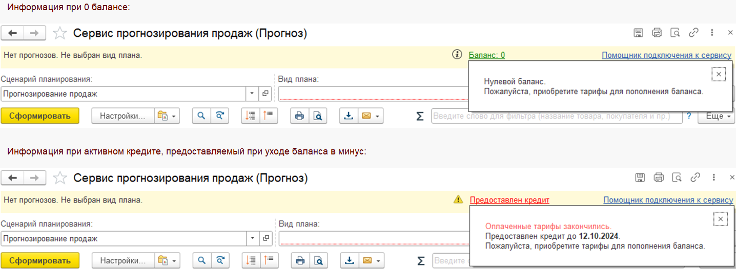 ■ В связи с выходом сервиса прогнозирования в тираж реализована функциональность отображения баланса сервиса прогнозирования и информирования пользователя о том, сколько единиц баланса будет затрачено на новый прогноз.
