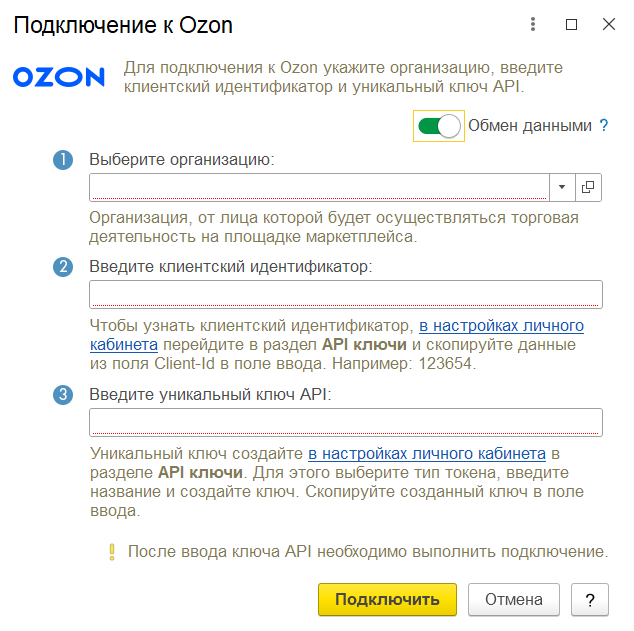 Это может потребоваться в связи с вводящимися в Ozon ограничениями на срок действия ключа API. Если он станет неактуальным, то будет возвращена ошибка при выполнении методов интеграции – потребуется создание нового ключа в личном кабинете площадки и его замена в учетной системе 1С.