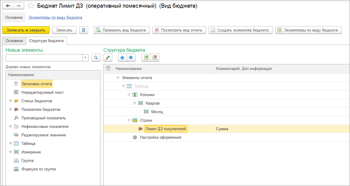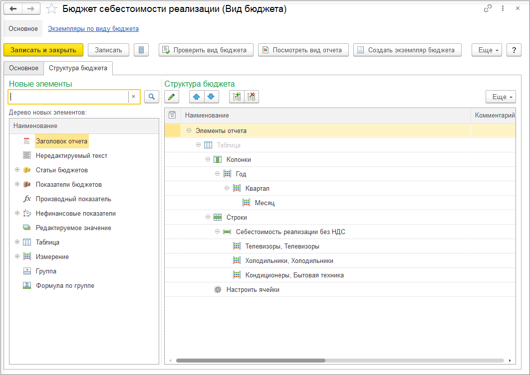 Создаем вид бюджета «Бюджет себестоимости реализации».