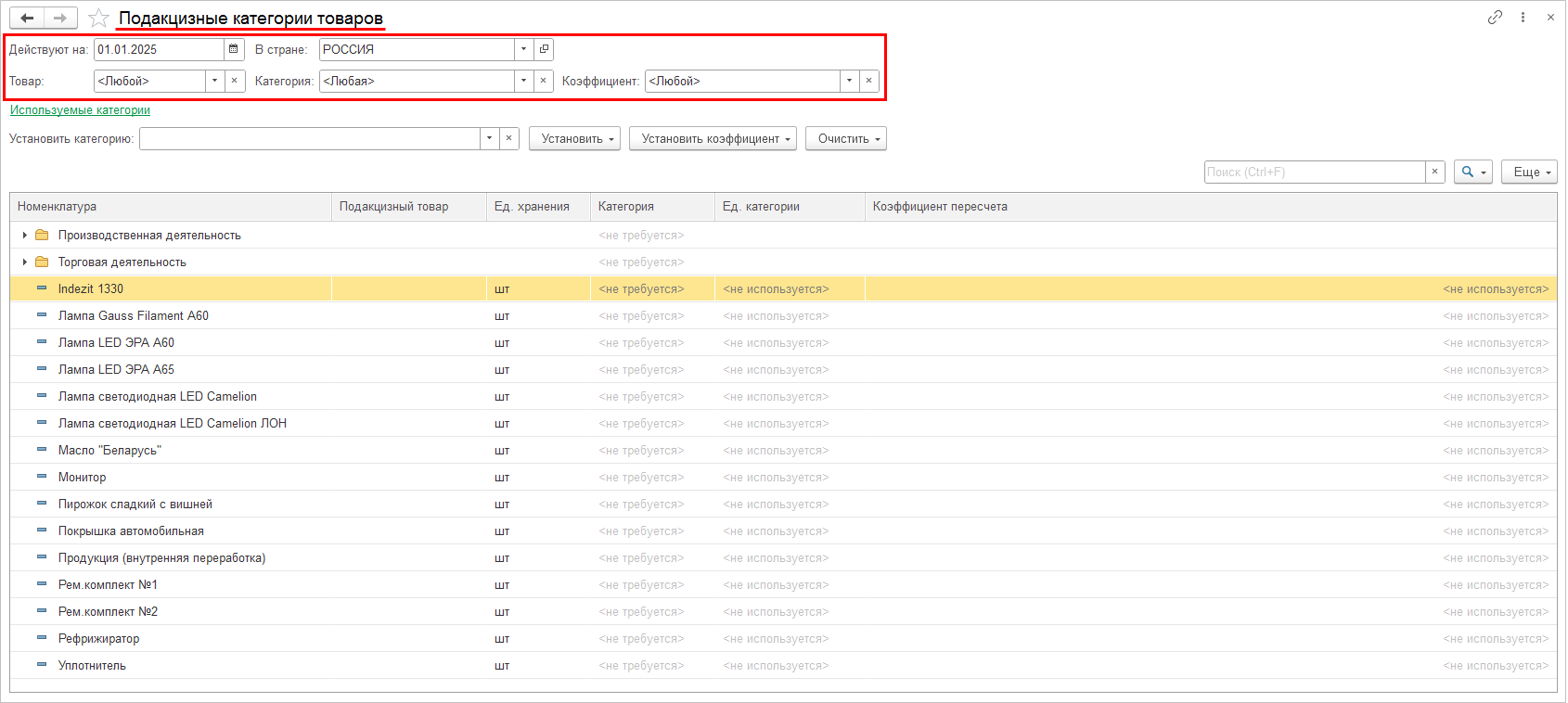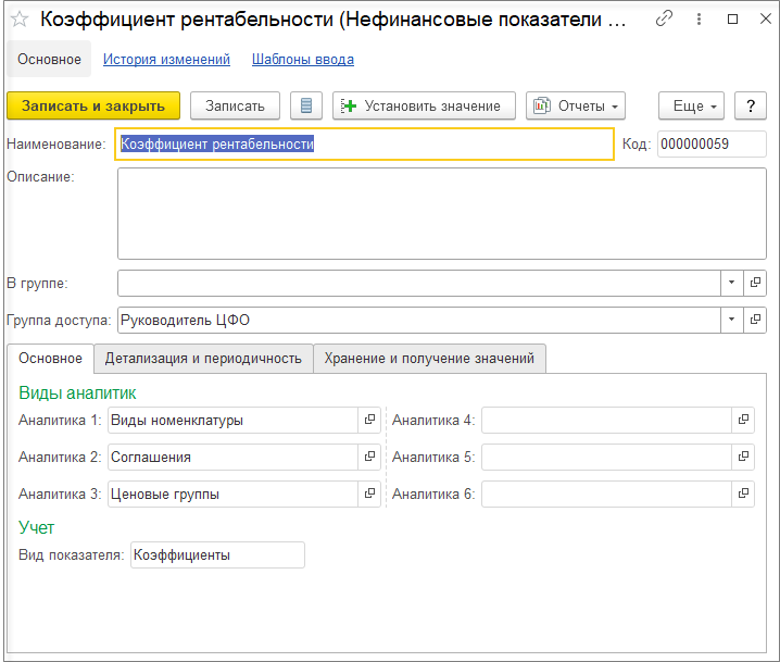 Для каждого вида номенклатуры в разрезе соглашений зададим плановый коэффициент рентабельности.
