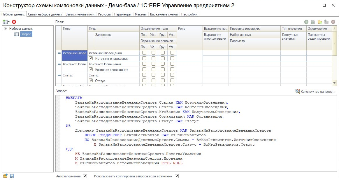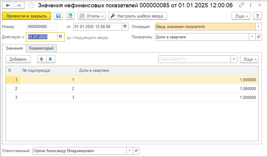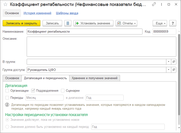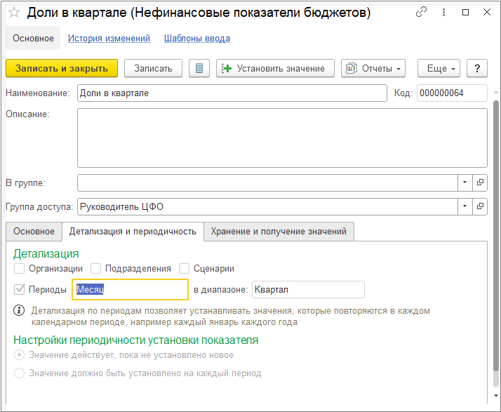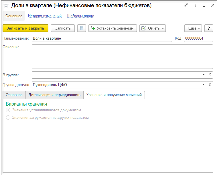 Если коэффициенты для базы распределения хранятся в каких-либо справочниках, документах, регистрах, то для загрузки их в подсистему бюджетирования в виде значения нефинансового показателя можно настроив в НФП загрузку из других подсистем с помощью настройки СКД. Для этого необходимо в карточке НФП на закладке Хранение и получение значений установить переключатель на значении Значения загружаются из других подсистем.