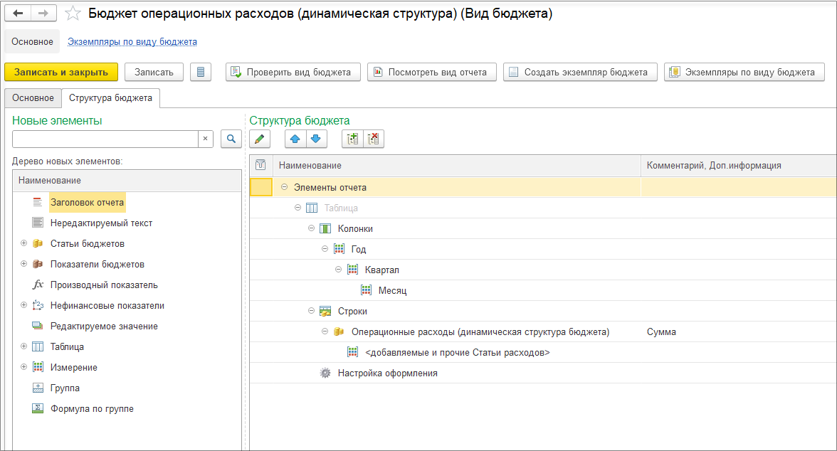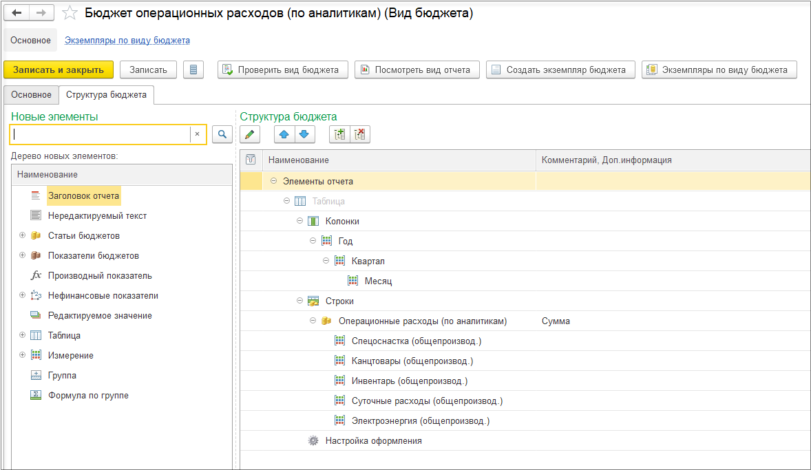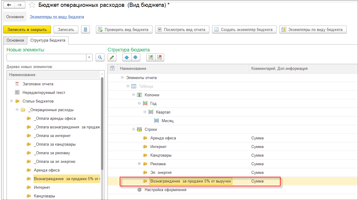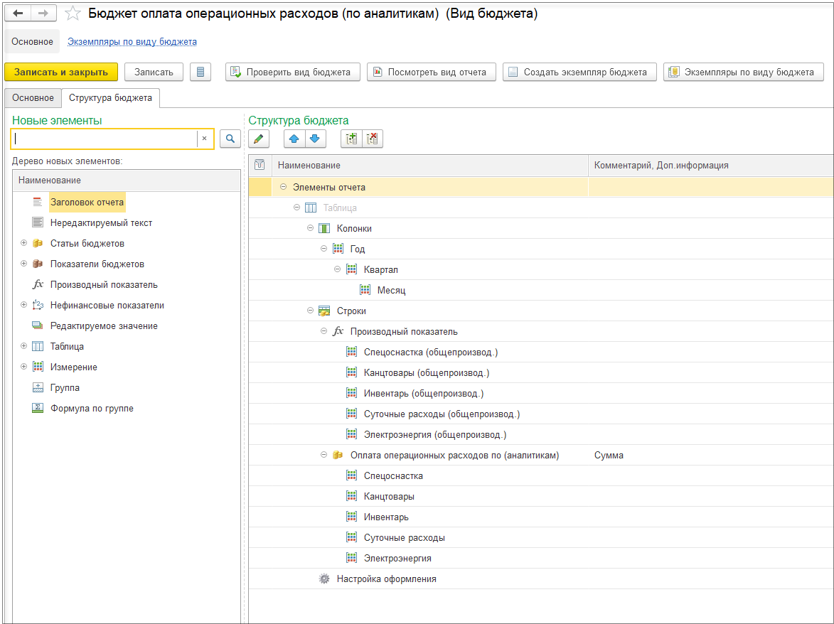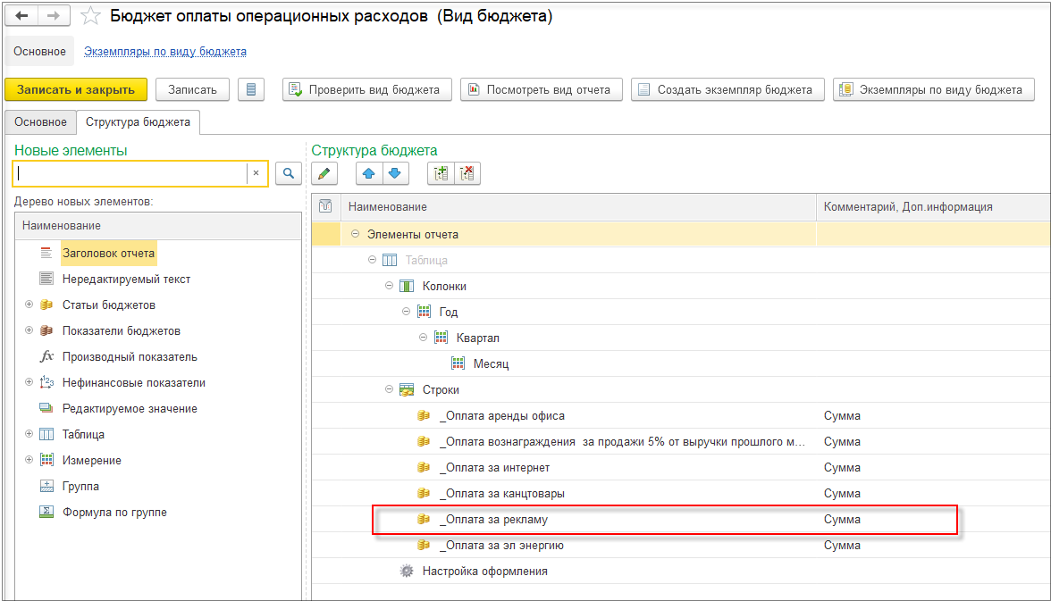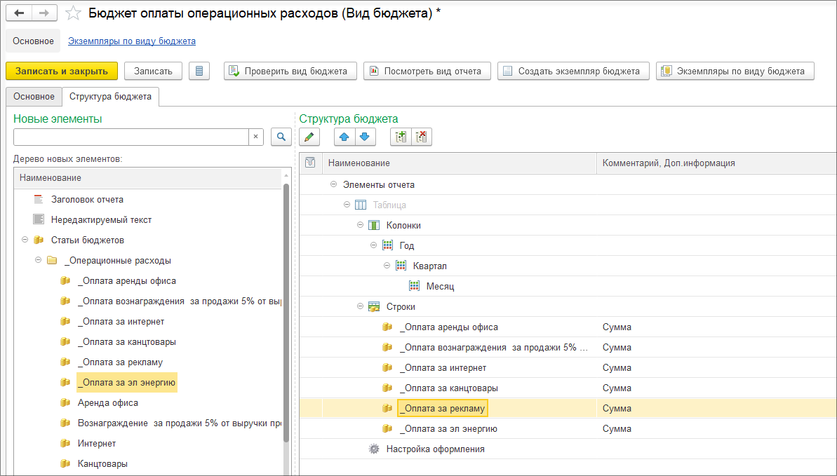 Создадим «Бюджет операционных расходов».