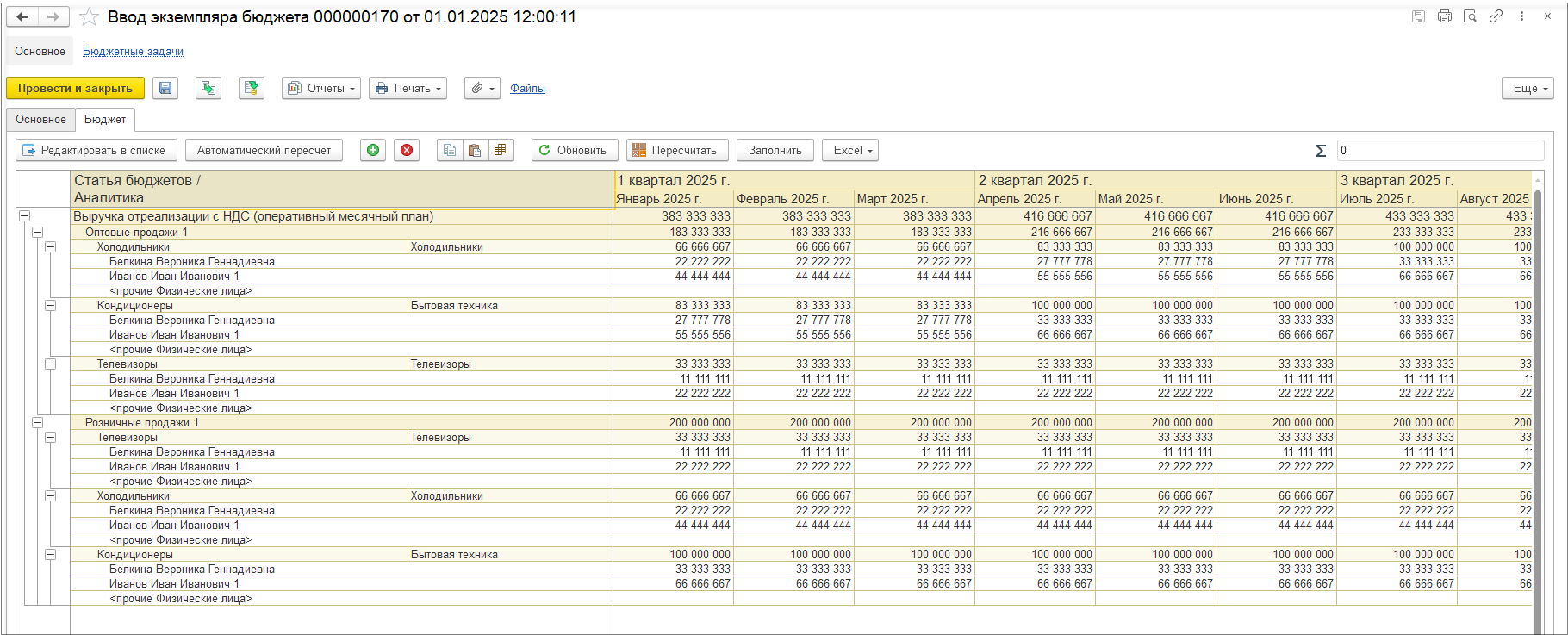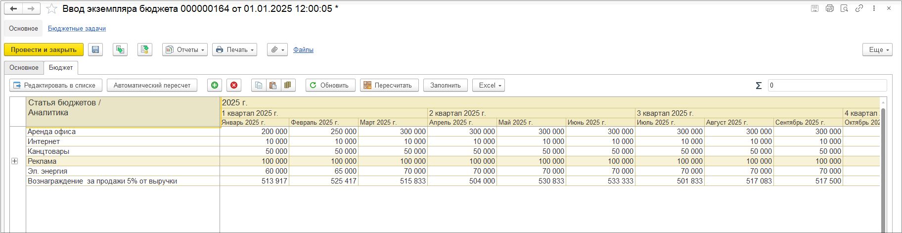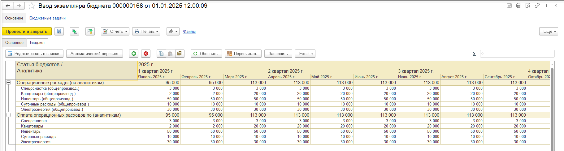 Заполним данные в экземпляре бюджета по расходам вручную.