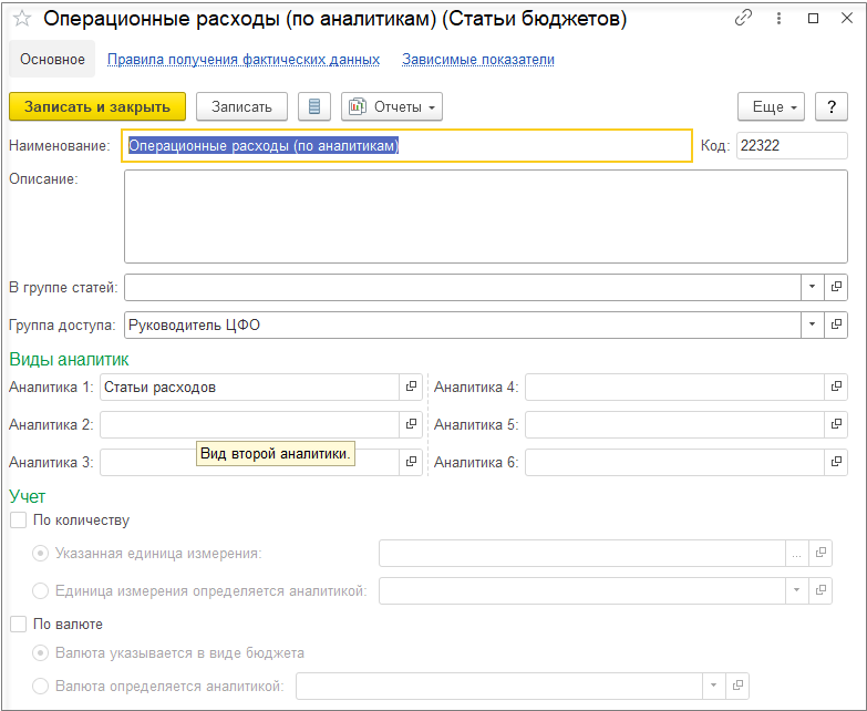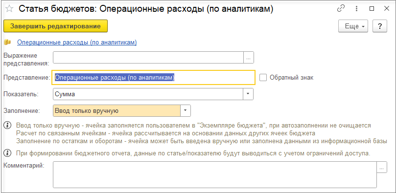 Заполним бюджет операционных расходов, в котором статью будут представлены в виде аналитик статьи расходов.
