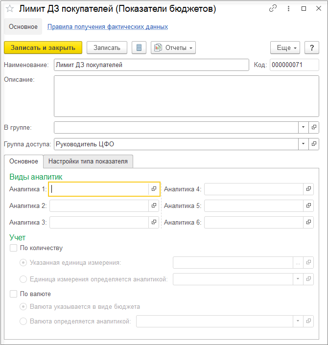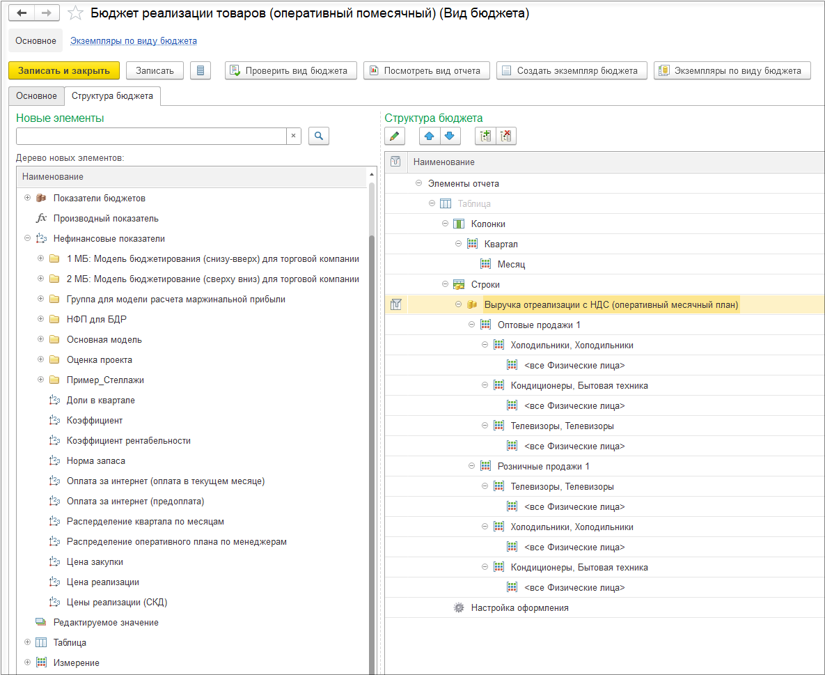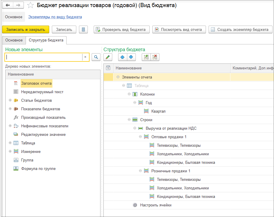 Далее создаем Вид бюджета «Бюджет реализации товаров».