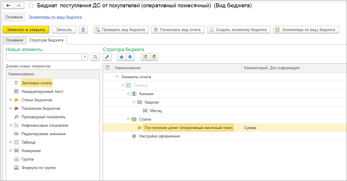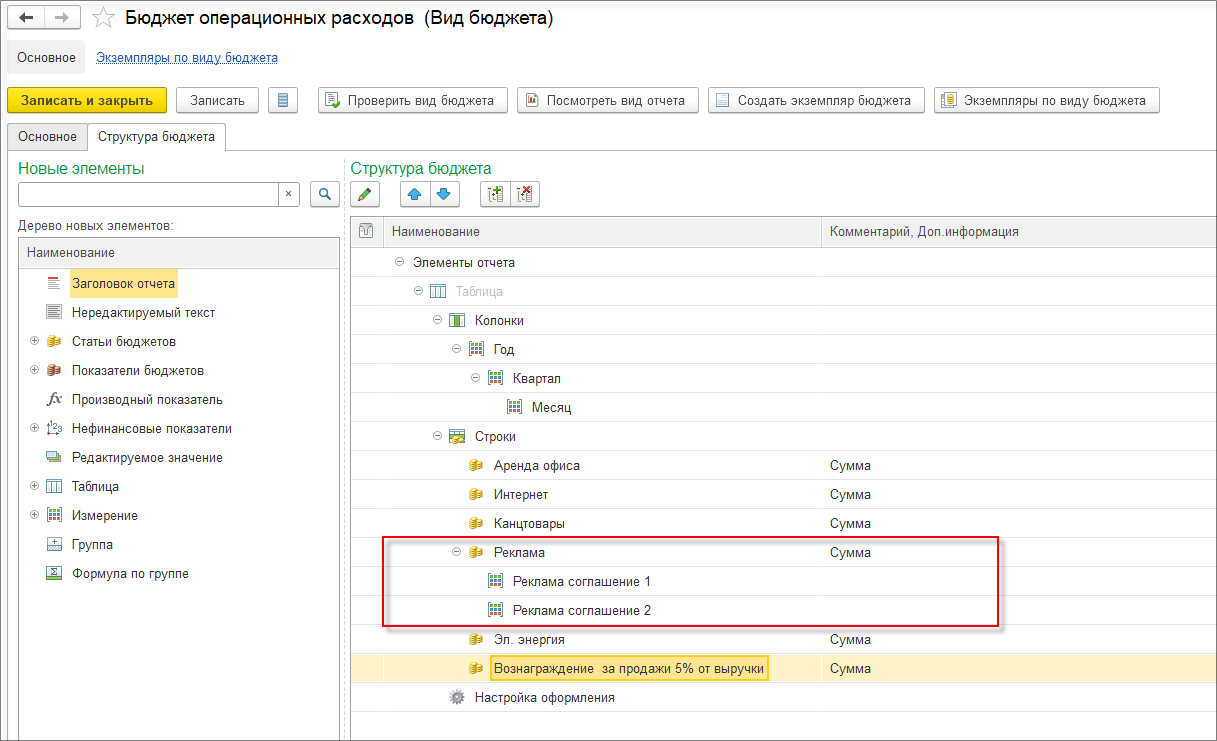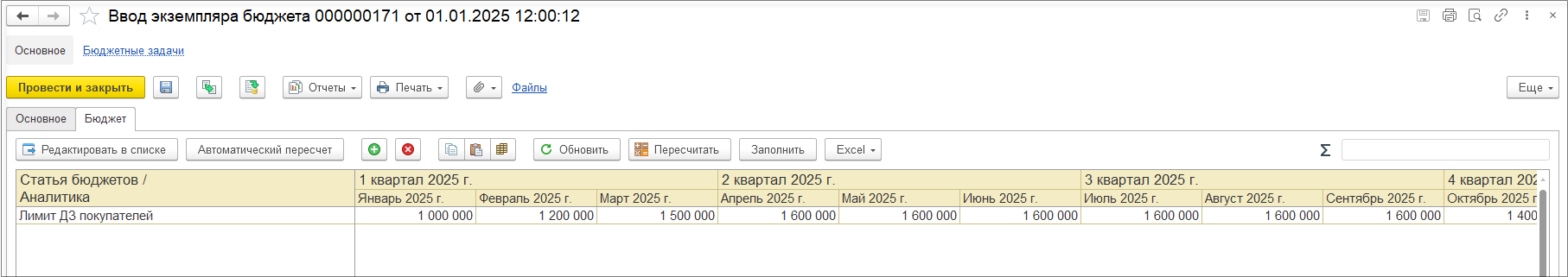 Возьмем за основу уже созданный бюджет реализации.
