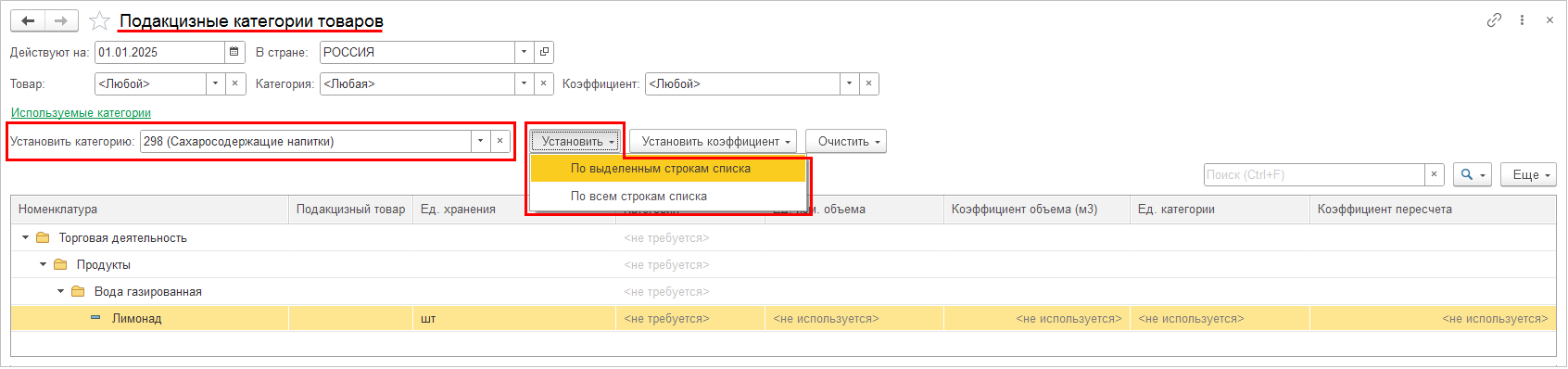 Доступен из документов Условия ретро-бонусов поставщика, в которых товары указаны через сегменты или свойства номенклатуры.