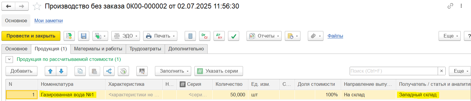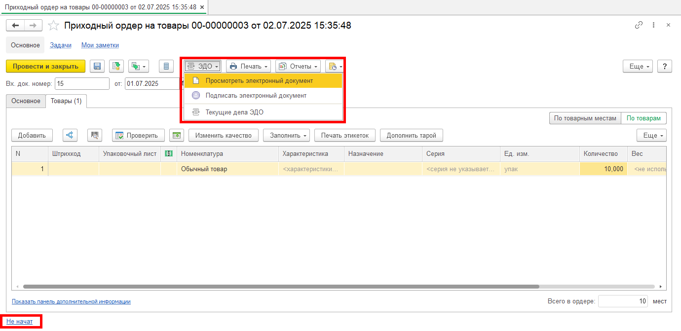 Если не удалось идентифицировать номенклатуру, то требуется интерактивно выбрать существующую или создать новую карточку номенклатуры, характеристику (если ведется) и упаковку.