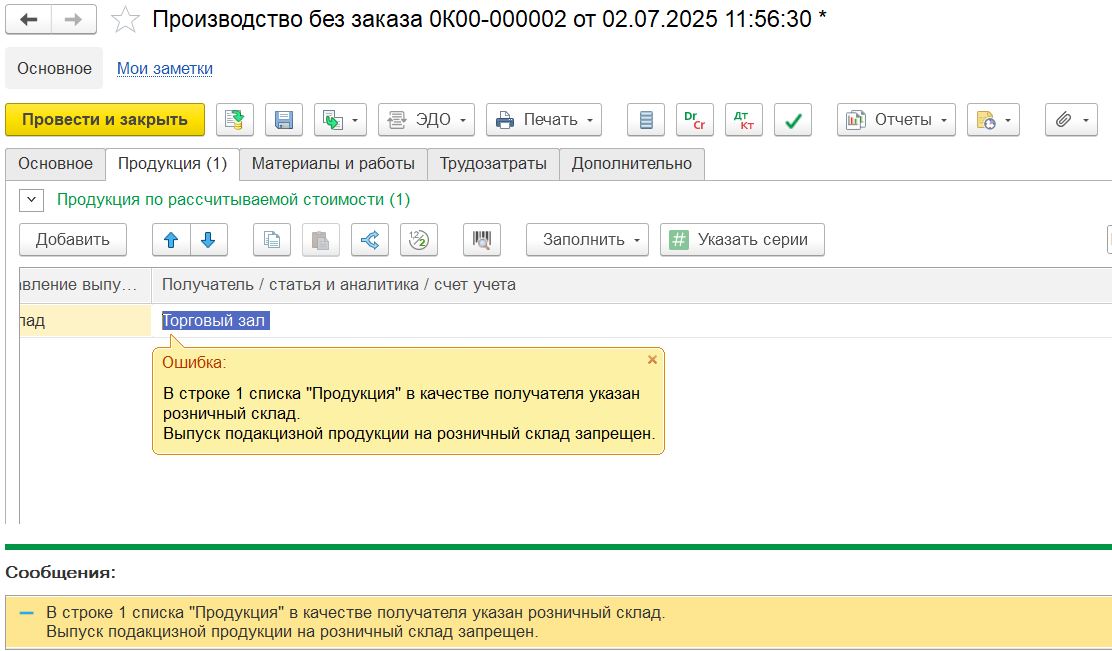 Проверка может занимать определенное время. Необходимо дождаться успешного завершения предварительной проверки. При наличии ошибок проверки формирование и отправка разрешения на отгрузку не имеет смысла, необходимо сначала обработать ошибки, после отправить в ГИС МТ уже корректный сформированный электронный документ. Если документ Разрешение на отгрузку было создано ранее, в нем выводится ссылка для переформирования электронный документа.