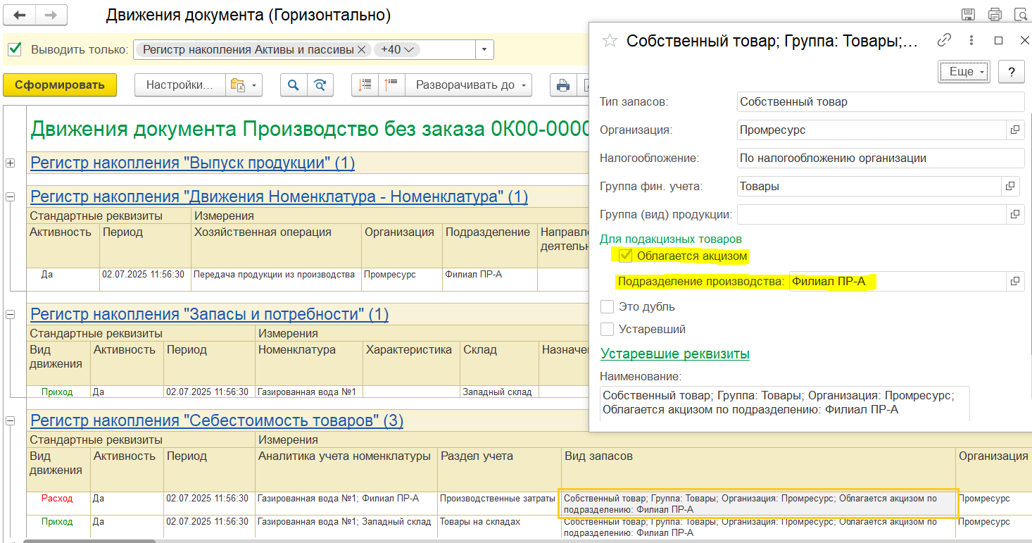 При отражении Производственной операции ФГИС "Сатурн" теперь строки таблицы Сырье распределяются по производимой продукции. По кнопке Сырье текущей продукции в таблице Сырье можно отобрать сырье, указанное на выбранную строку продукции.