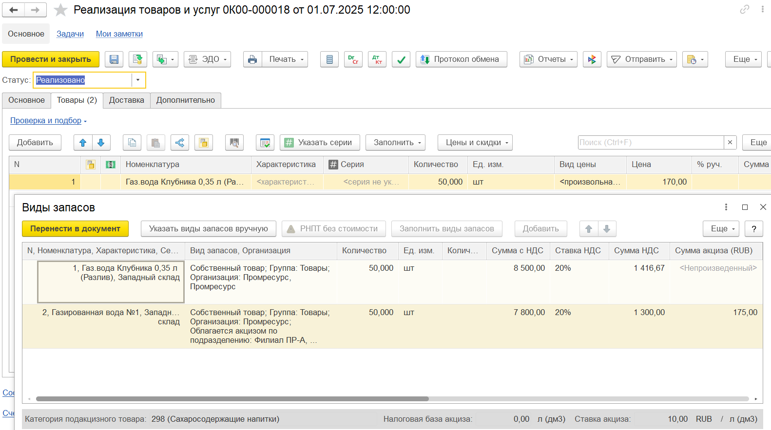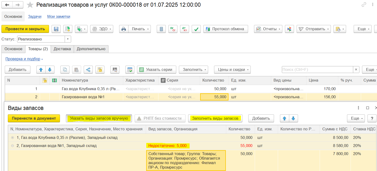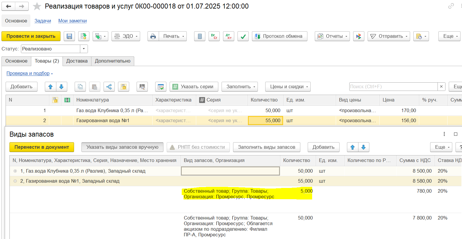 Для товарных групп с длительными сроками годности, которые можно реализовывать без маркировки до окончания этого срока, поддержана возможность отгрузки в смешанном режиме: немаркированных остатков и единиц товаров с указанием конкретные кодов маркировки / кодов ОСУ.